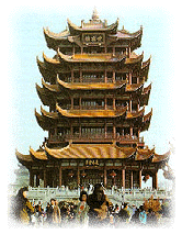 The Yellow Crane Tower was built atop Sheshan (the Snake Hill) of the Wuchang district along the Yangtze River. Acclaimed as an ancient historical site and scenic wonder, it is one of three famous towers south of the Yangtze River. Destroyed many times by fire, it was rebuilt in 1981 and completed in June 1985, when it was opened to the public. Reconstructed according to a picture from the Qing Dynasty, the tower has five stories and rises 51.4 meters. Covered with yellow glazed tiles and supported with 72 huge pillars, it has 60 upturned eaves, layer upon layer. Looking at the tower from any vantage point, one will see the same scene. Its interior decor is antique, but the tower has adapted to modern needs as it is equipped with air-conditioning and an elevator.