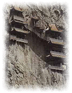 The Modair Wooden Pagoda was built during the later period of the Northern Wei Dynasty (386-534 A.D.) and is located in a canyon at the foot of the Hengshan Mountain. Hanging in mid-air, the pagoda is a rarity in terms of architecture. The existing 40-hall buildings made of wooden structures are scattered in different secluded spots. Built with mechanical principles, it stands propped up by hidden rocks and is based on flying beams with pillars and other beams in one integrated whole. Unique, difficult to access, and ingeniously built, it is as the local saying goes: "Hung by three horsetails suspended in mid-air." Inside the temple are 78 sculptured statues handed down from different dynasties.