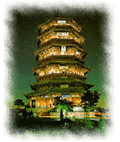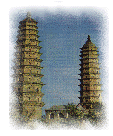 The Twin Pagoda Monastery is located southeast of the railway station in Taiyuan City. It is called the Twin Pagoda because it has two 53-meter-tall sister pagodas containing 13 floors each. Built in 1608, the pagodas are made of brick and stone and are structured with exquisite brick-sculptured brackets and glazed, flying eaves. In the monastery are two lilacs and peonies handed down from the Ming Dynasty. In the corridor are steles with inscriptions by ancient Chinese calligraphers of great popularity such as Wang Xizhi, Yan Zhenqing, Liu Gongquan, and Su Dongpo. The Twin Pagodas have become the symbol of Taiyuan, the capital of Shanxi.