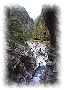 Located 15 kilometers north of Hualian, Taroko Gorge is one of the most spectacular natural wonders of the world. Taroko means "beautiful" in the Ami Dialect. A gorge with sheer cliffs dropping away to a rushing river of white water and through which flows the Li-Wu River, Taroko winds sinuously for 19 kilometers from the coast to its upper end at Tienhsiang. The scenic spots along the route are the Light of Zen Monastery, Eternal Spring Shrine, Swallows Grotto, Tunnel of Nine Turns, and the Bridge of Motherly Devotion. The Eternal Spring Shrine, just above the entrance to the gorge, straddles a waterfall: it was built as a memorial to the 450 workers who died building the Taroko highway.